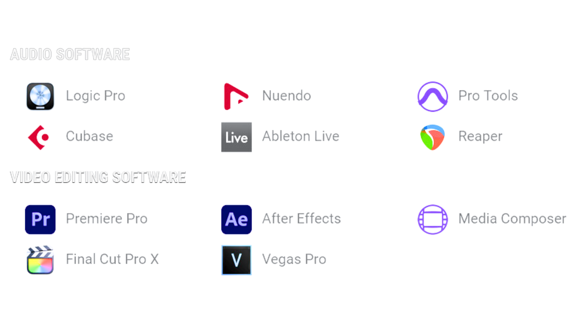 All Sound Effects come as WAV files, meaning you can import and work with them in any software that can handle this file type. Here are the most common audio and video editing software tools that work perfectly with our epic Sound Effects.